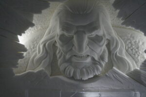 Meri-Lapin Matkailuoppaiden päiväretki taianomaiseen lumen ja jään maailmaan Lappland Hotelsin Snowvillageen la 6.4.2024. Lumikylän teemana tänä vuonna on pohjoismainen mytologia ja vierailijat pääsevätkin ihailemaan Thorin, ukkosen jumalan legendaarista Mjölnir vasaraa, haltioiden maailmaa Alfheimia ja tietysti myös Kalevalan tunnettuja tarinoita Sammon puolustuksesta Väinämöiseen.
