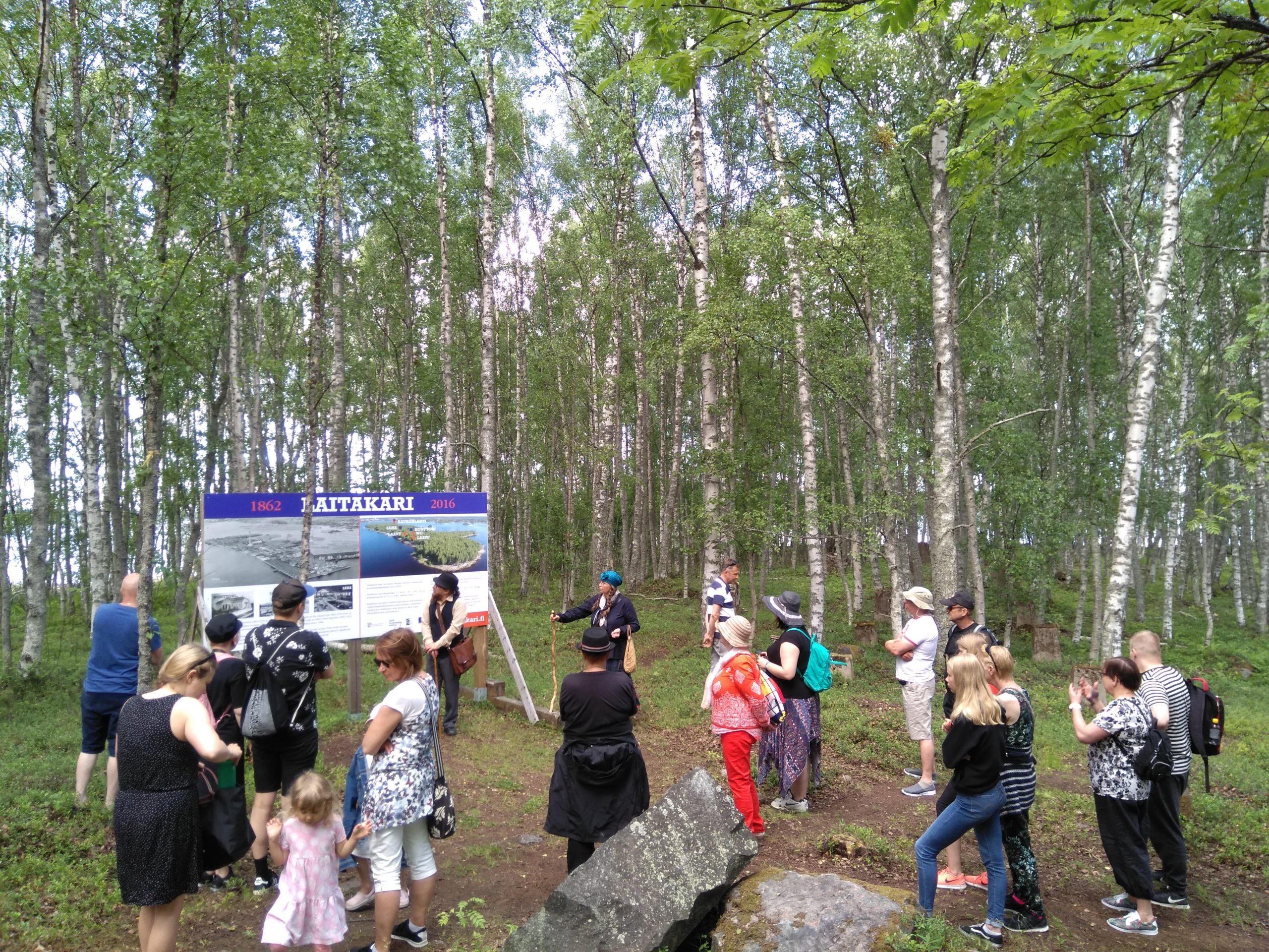 Meri-Lapin Matkailuoppaat järjestävät opastetun retken Laitakarin sahasaaressa. Laitakarin sahanaikainen talonmies Brita Anttonen johdattaa ryhmää ja matkalla tapaamme mm. muhari Rauha Haltun ja opettaja Eevi Hännisen sekä lankunkantaja Jakob Lammassaaren.
